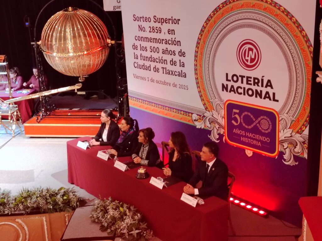 En el marco de los 500 años de la fundación de la ciudad de Tlaxcala, la Lotería Nacional realizó el Sorteo Superior número 2859 desde el Teatro Xicohténcatl, un evento que reunió a autoridades estatales y federales.