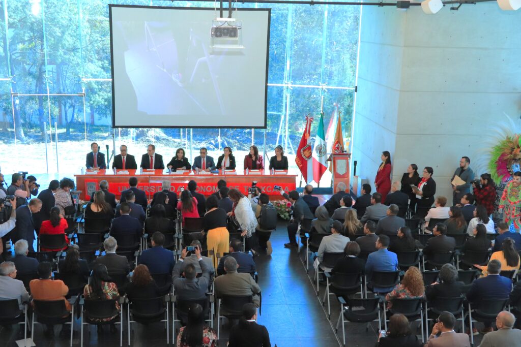 Previo al acto protocolario, se realizó se develó una placa conmemorativa, se cortaron los listones inaugurales del Escudo Universitario y del acceso al Auditorio Semifijo de “Educación Inicial” y se develó la placa con el apotegma de la UATx en el Mirador de la Torre.