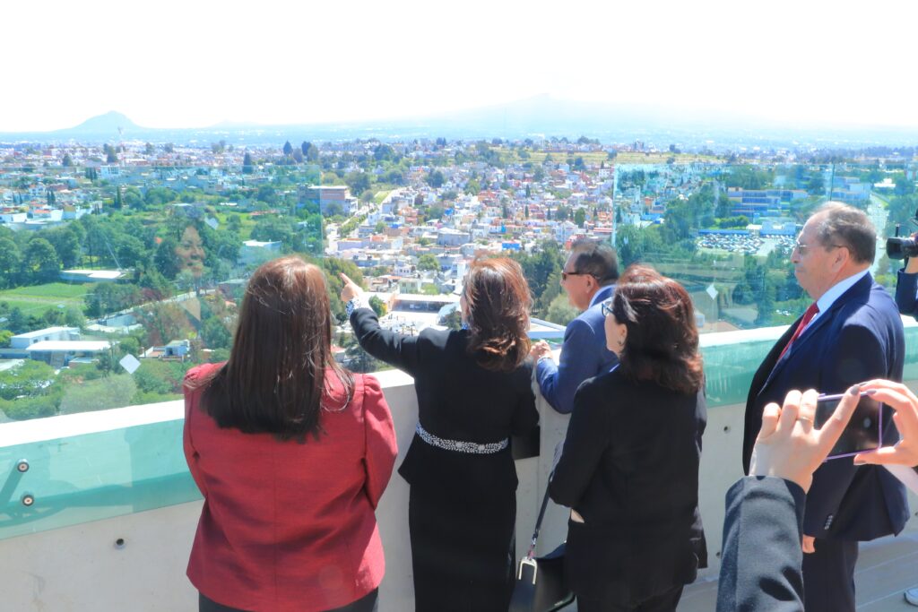 Rector de la UATx entrega la estructura del Proyecto Educa-UATx: Torre de Rectoría, acompañado por la Gobernadora de Tlaxcala