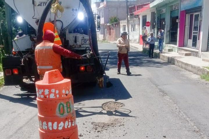 En esta ocasión, se realizaron trabajos en la calle Ferrocarril Mexicano, en la localidad de Santa María Ixtulco, donde cuadrillas atendieron puntos afectados por el deterioro del pavimento.