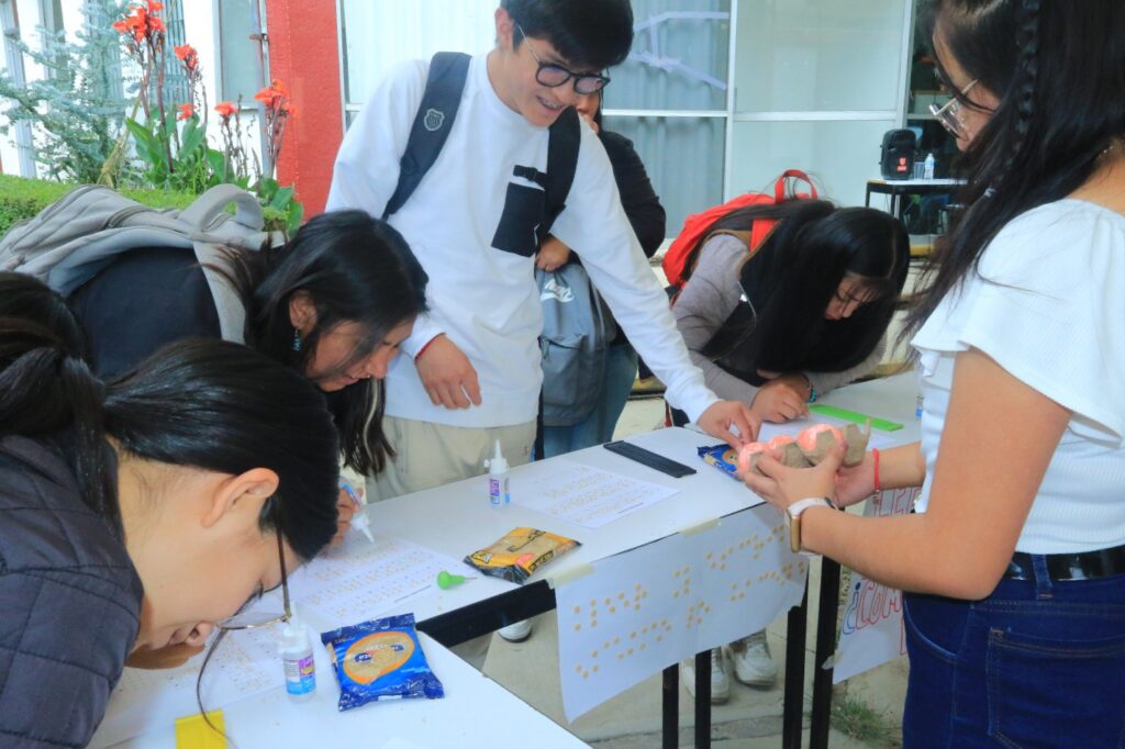 Los asistentes participaron en estaciones interactivas diseñadas y coordinadas por estudiantes de 7º semestre de la Licenciatura en Educación Especial, donde pudieron experimentar el uso del bastón blanco, el sistema Braille, el Ábaco Cranmer o Moraes, la elaboración de materiales táctiles y la orientación en actividades de la vida diaria.