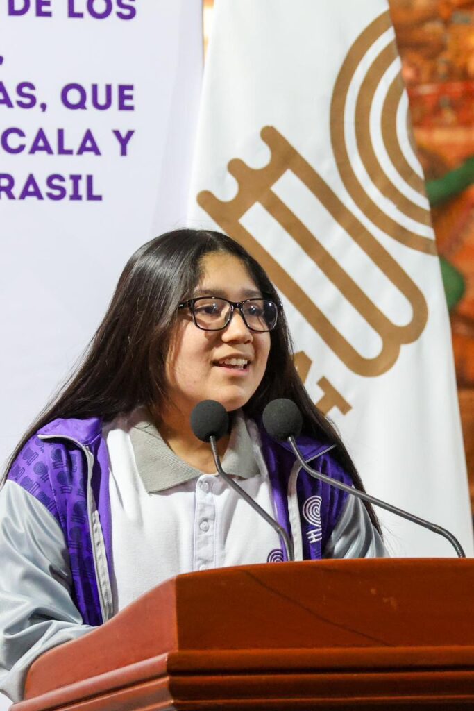 Cuéllar Cisneros recordó que Camila obtuvo la medalla de oro nacional en matemáticas, convirtiéndose en la primera tlaxcalteca y mexicana en lograrlo, demostrando que el talento no tiene límites ni género.