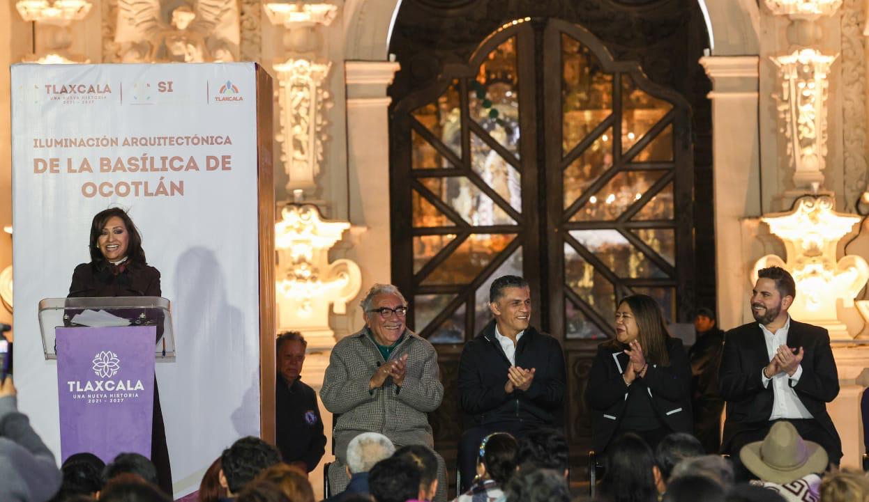 La gobernadora Lorena Cuéllar Cisneros inauguró la iluminación arquitectónica de la Basílica de Nuestra Señora de Ocotlán, una obra que, además de realzar el valor histórico y artístico del recinto, busca fortalecer el turismo cultural y religioso de Tlaxcala.