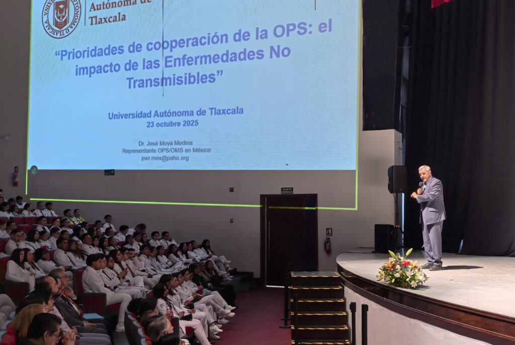 Como parte de esta celebración, se ofreció la conferencia magistral Prioridades de cooperación de la OPS en el impacto de Enfermedades no Transmisibles, que impartió el Doctor José Moya Medina, Representante de la Organización Panamericana de la Salud (OPS) en México.