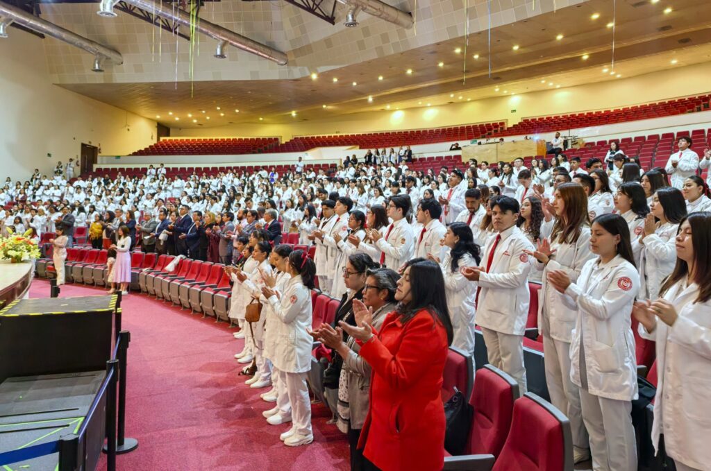 Reunidos en el Centro Cultural Universitario (CCU), estudiantes de la Licenciatura en Médico Cirujano de la Facultad de Ciencias de la Salud UATx portaron con orgullo la bata blanca que simboliza su compromiso con la salud y la justicia social, y recibieron una felicitación en la que la Universidad expresa su gratitud a quienes, con vocación, responsabilidad e integridad, contribuyen al bienestar y al fortalecimiento de la sociedad.