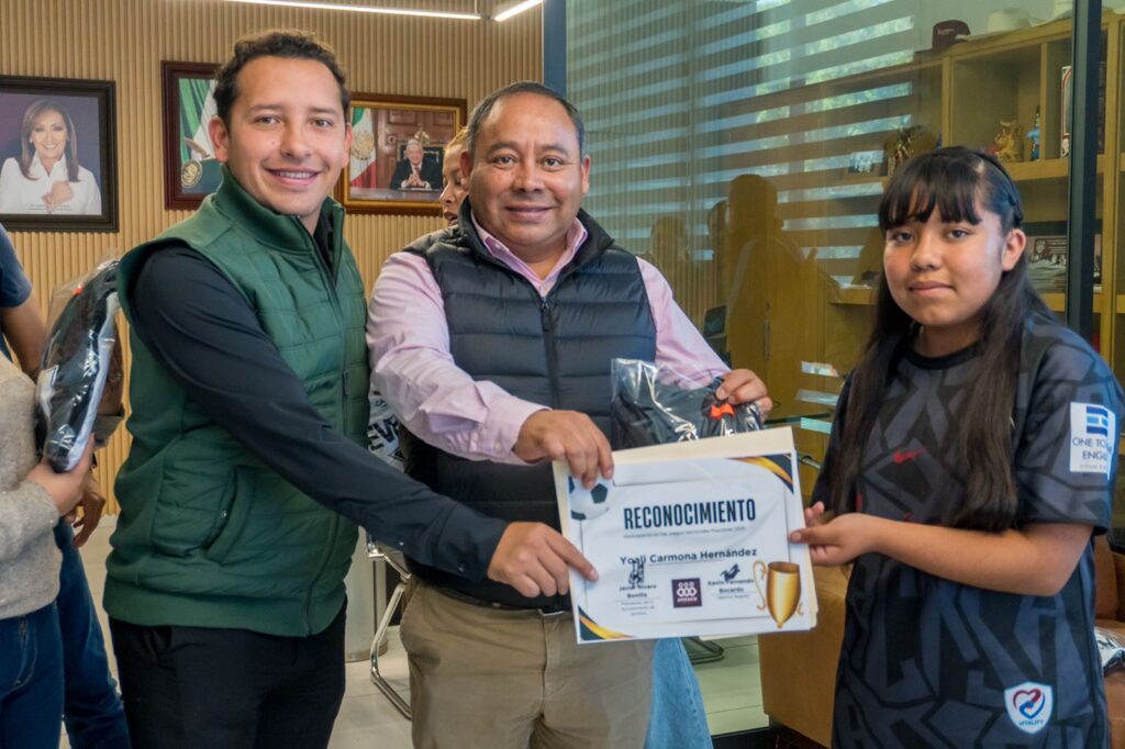 • Previamente, junto al regidor Kevin Fernando Lozano Bocardo, reconocieron al primer equipo femenil juvenil de futbol 6×6 de Apizaco por su histórica representación.