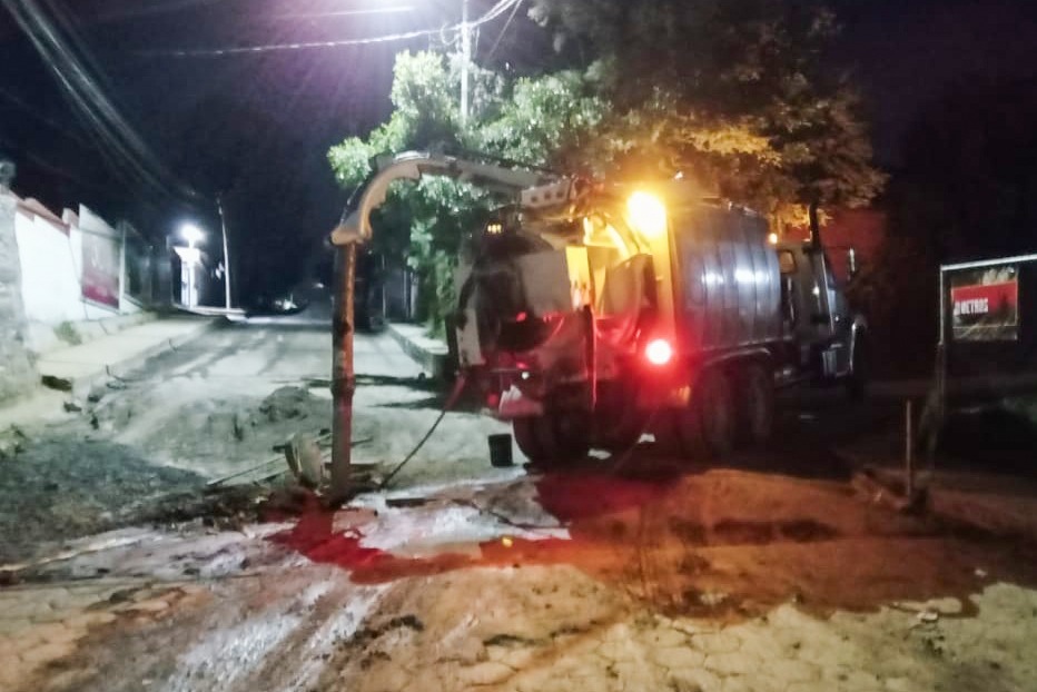 Durante una intervención, personal de la Comisión de Agua Potable y Alcantarillado Municipal (CAPAM) realizó trabajos con maquinaria especializada en la citada calle, donde se detectó una obstrucción causada por acumulación de tierra. Estas labores permiten restablecer el flujo hidráulico y evitar afectaciones en las viviendas y calles cercanas.