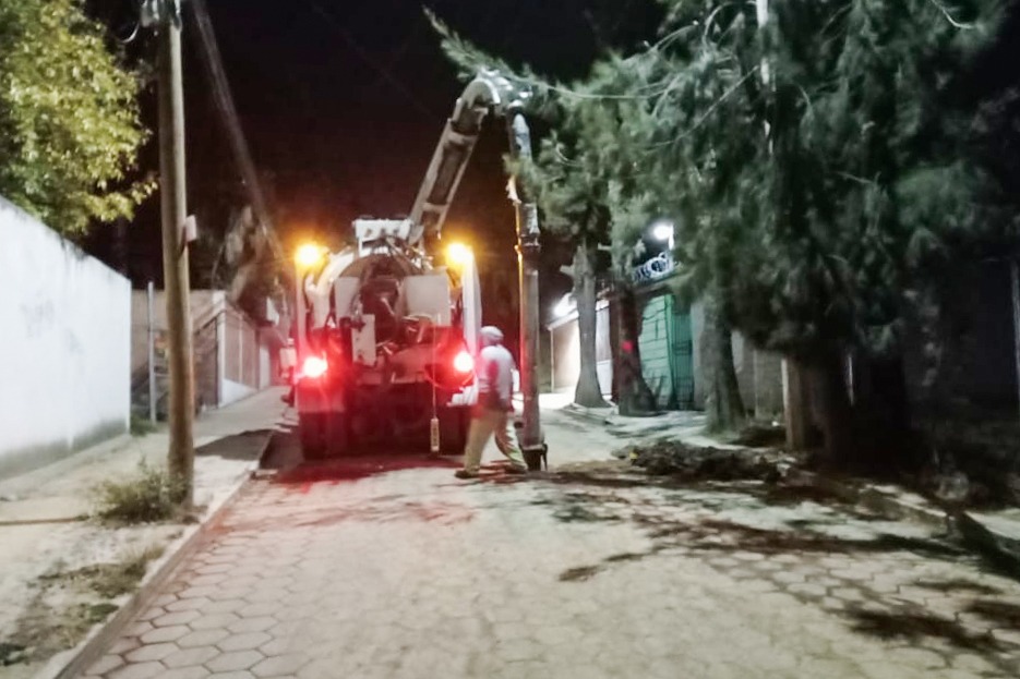 El Gobierno municipal de Alfonso Sánchez García intensificó las acciones de desazolve y mantenimiento del sistema de drenaje, con el propósito de mantener en buen estado la infraestructura urbana y con ello brindar un mejor servicio a la población, en esta ocasión en la calle Antonio Carvajal, de la comunidad de Santa María Acuitlapilco.