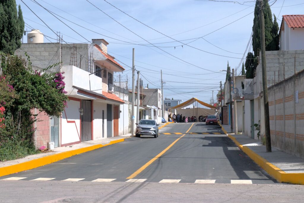 • El presidente municipal de Apizaco encabezó la entrega de mil 876.01 metros cuadrados de pavimento de concreto asfáltico en la calle 27 de Septiembre, comunidad de Santa Anita Huiloac.