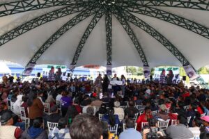 En su intervención, la presidenta honorífica del Comité Consultivo de Bienestar, Fernanda Espinosa de los Monteros Cuéllar, explicó que el programa es resultado del trabajo coordinado con la Secretaría de Ordenamiento Territorial y Vivienda (SOTyV) y de los recorridos constantes por las comunidades, donde brigadas levantan censos para identificar a quienes enfrentan mayores carencias.