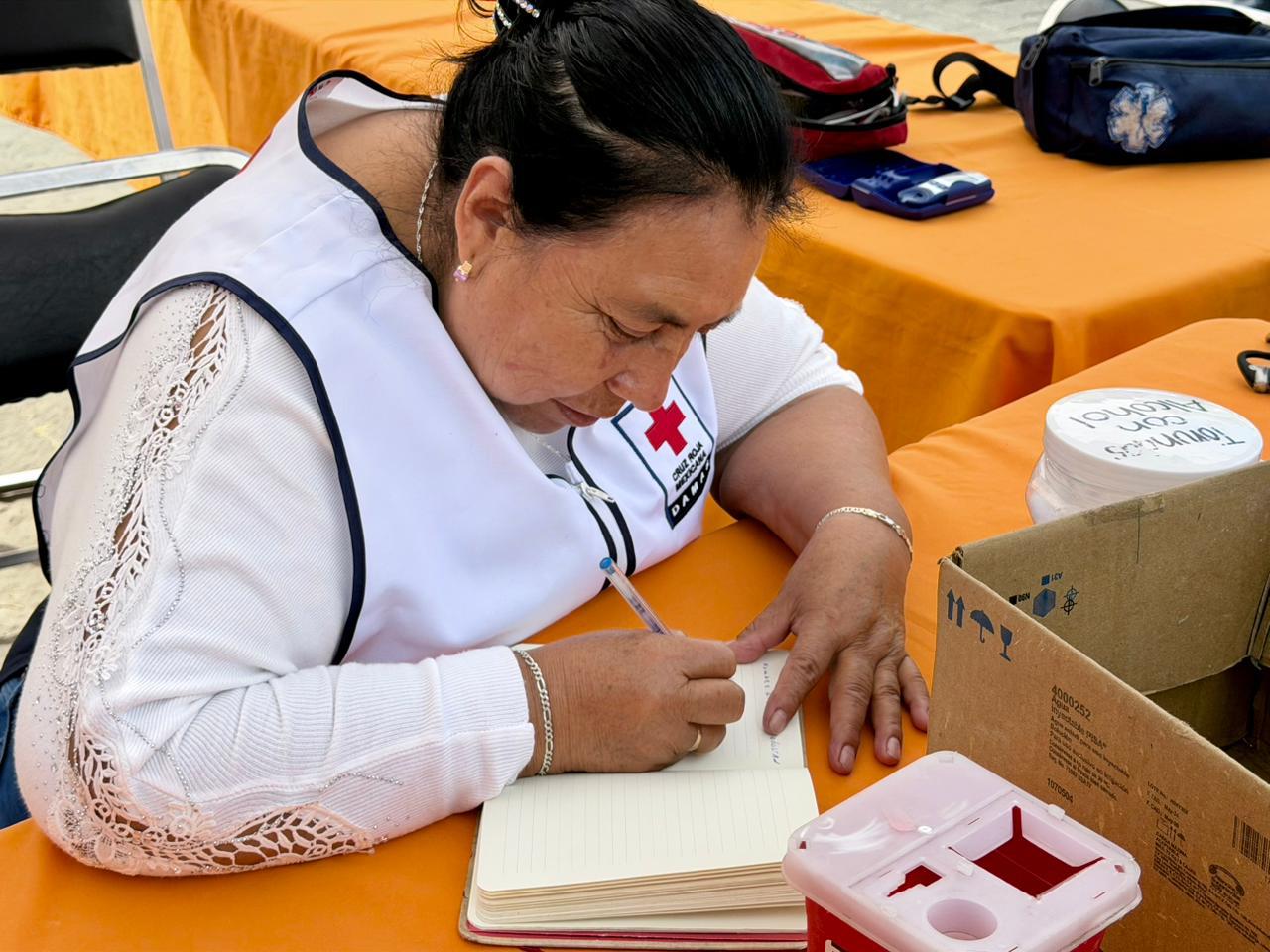 En la jornada participó la Coordinación del Voluntariado de Damas Estatal, así como las áreas de Socorro y Capacitación de la Cruz Roja. Se ofreció toma de signos vitales como presión y glucosa, además de información para la autoexploración y la detección oportuna del cáncer de mama.