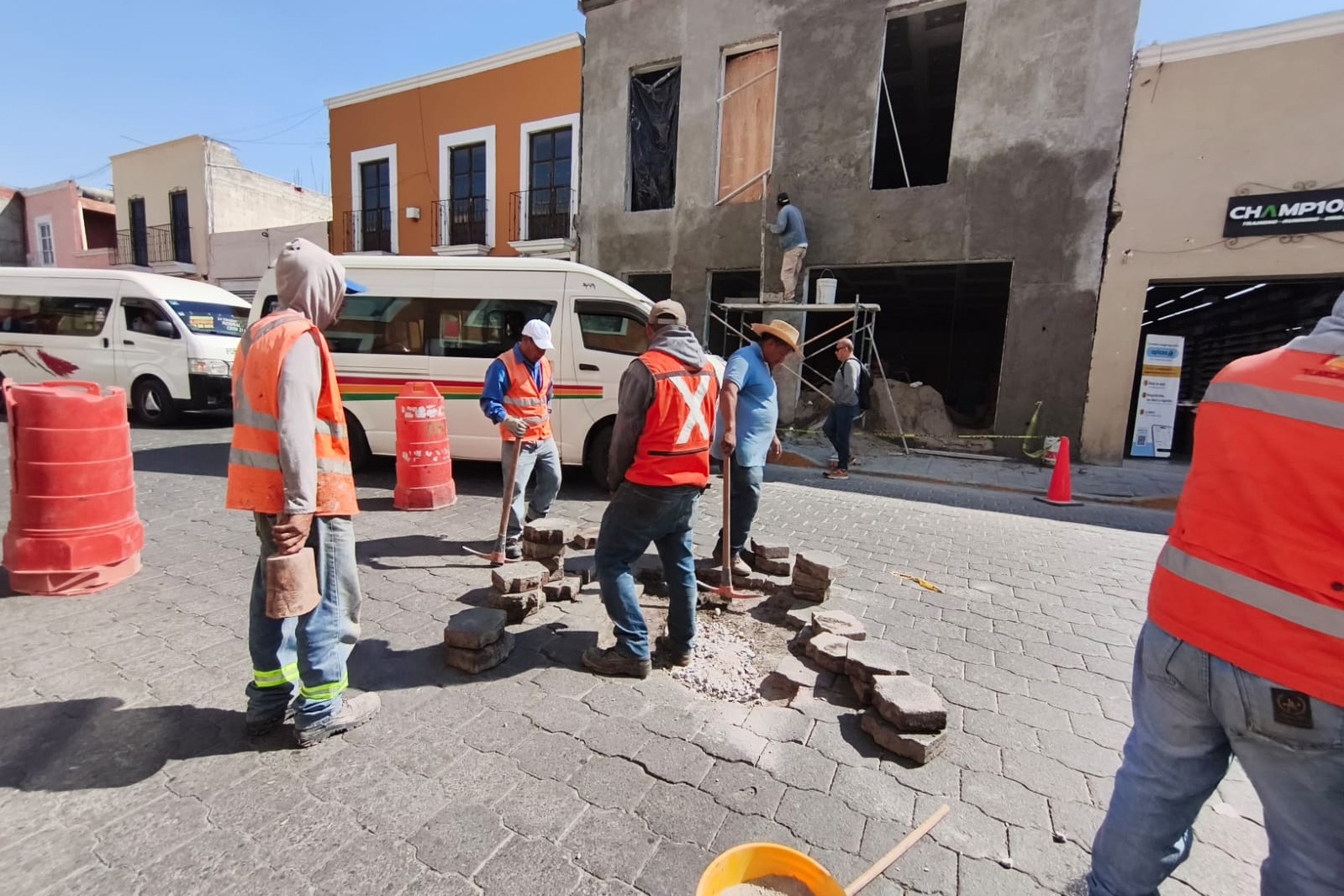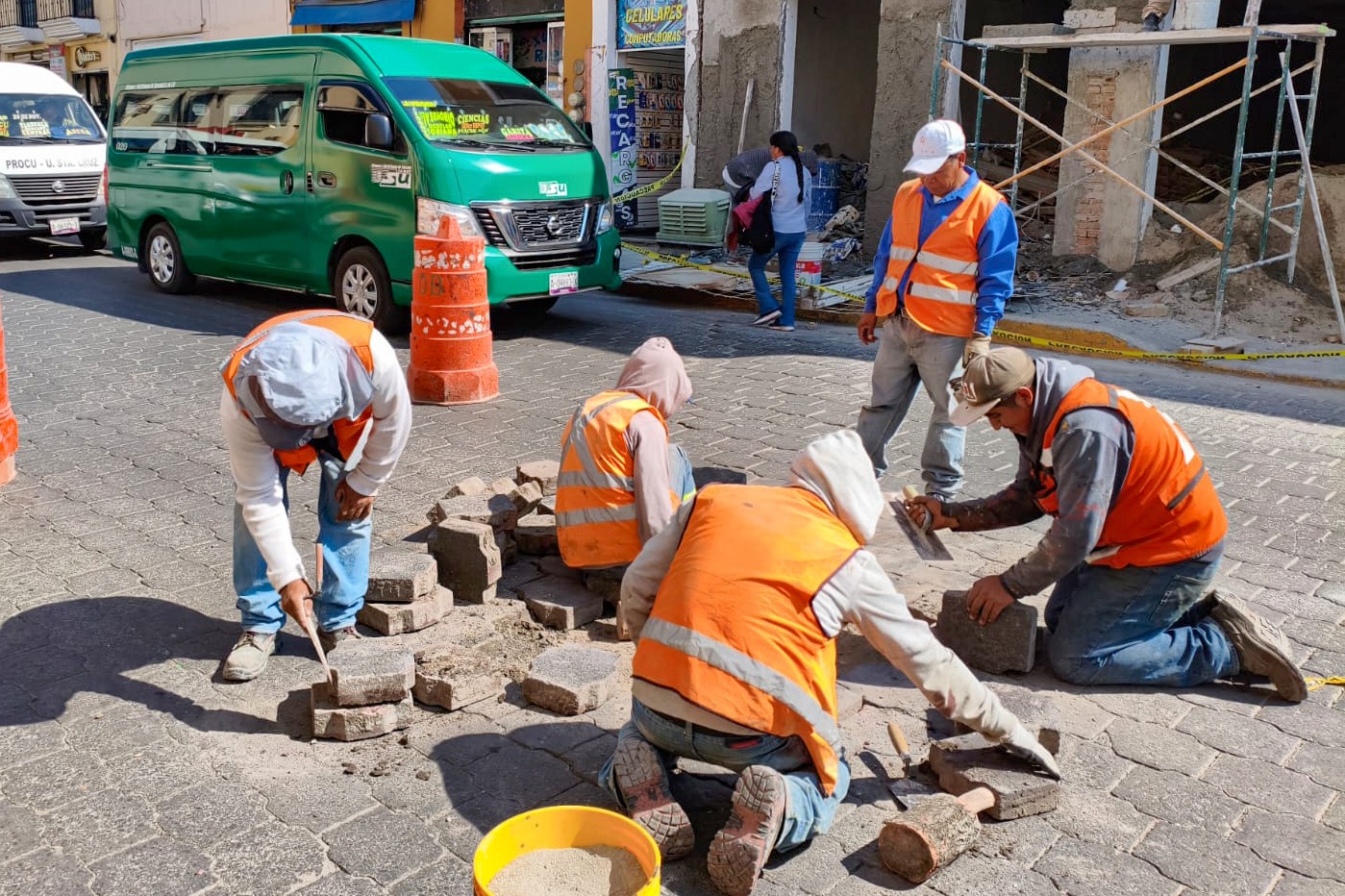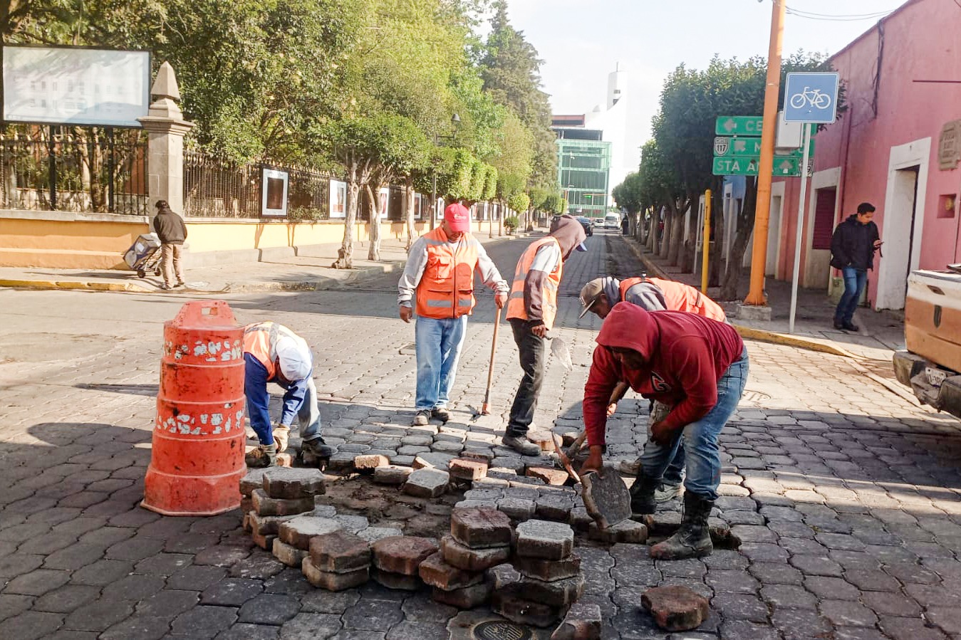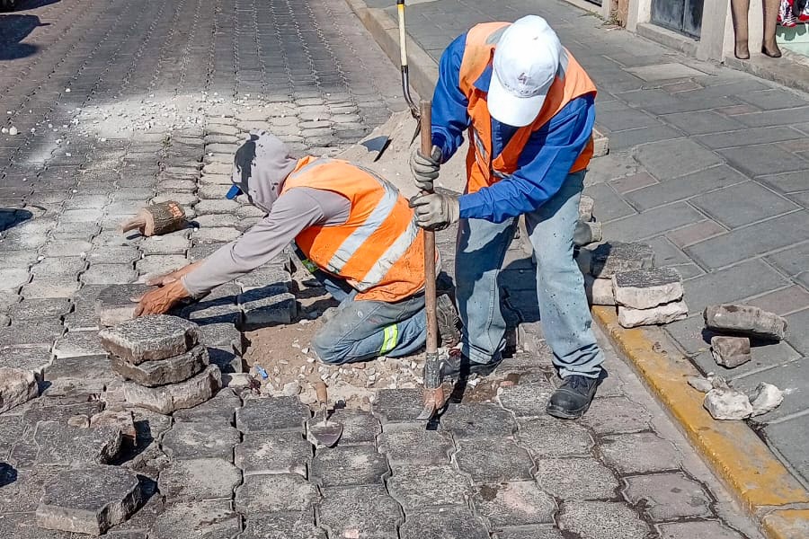 Como parte de los trabajos de mantenimiento permanente, brigadas municipales realizaron la renivelación de hundimientos en puntos del centro histórico, entre ellos la Calle Zitlalpopócatl y la Avenida Juárez.