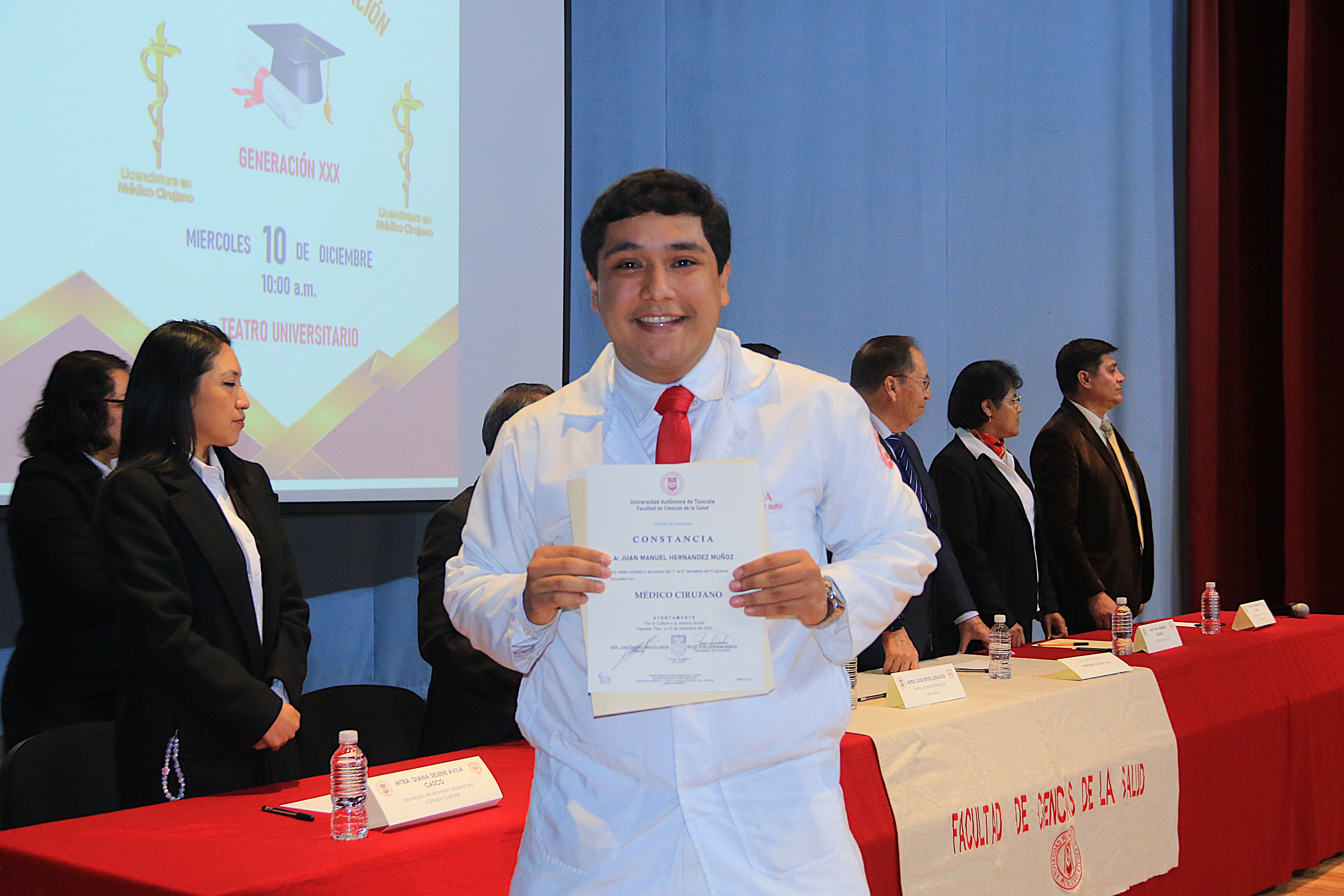Dijo a los graduados que ellos representan la excelencia académica y el espíritu humanista que distingue a la UATx a través de su modelo educativo, por lo que los exhortó a desempeñarse con responsabilidad, ética y respeto ante la confianza que les otorguen sus futuros pacientes.