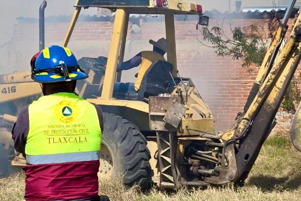 UNEN ESFUERZOS PROTECCIÓN CIVIL Y POLICÍA MUNICIPAL DE TLAXCALA CON EL ESTADO Y BOMBEROS PARA PROTEGER A LA POBLACIÓN DE INCENDIO EN PASTIZAL