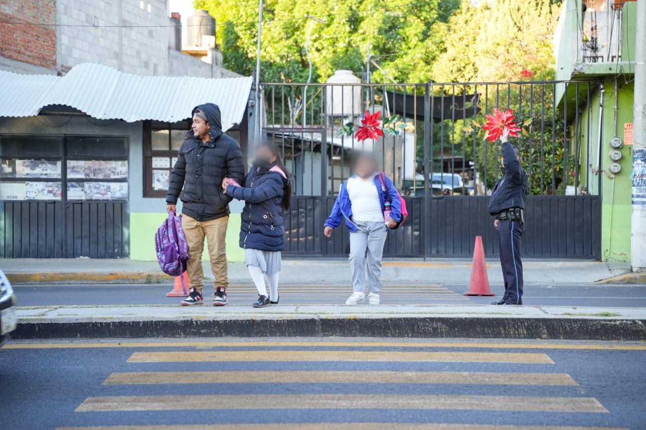 El alcalde explicó que esta acción preventiva tiene como propósito reducir riesgos y evitar incidentes durante los horarios de entrada y salida, brindando a niñas y niños el acompañamiento necesario para que ingresen a sus escuelas con tranquilidad.