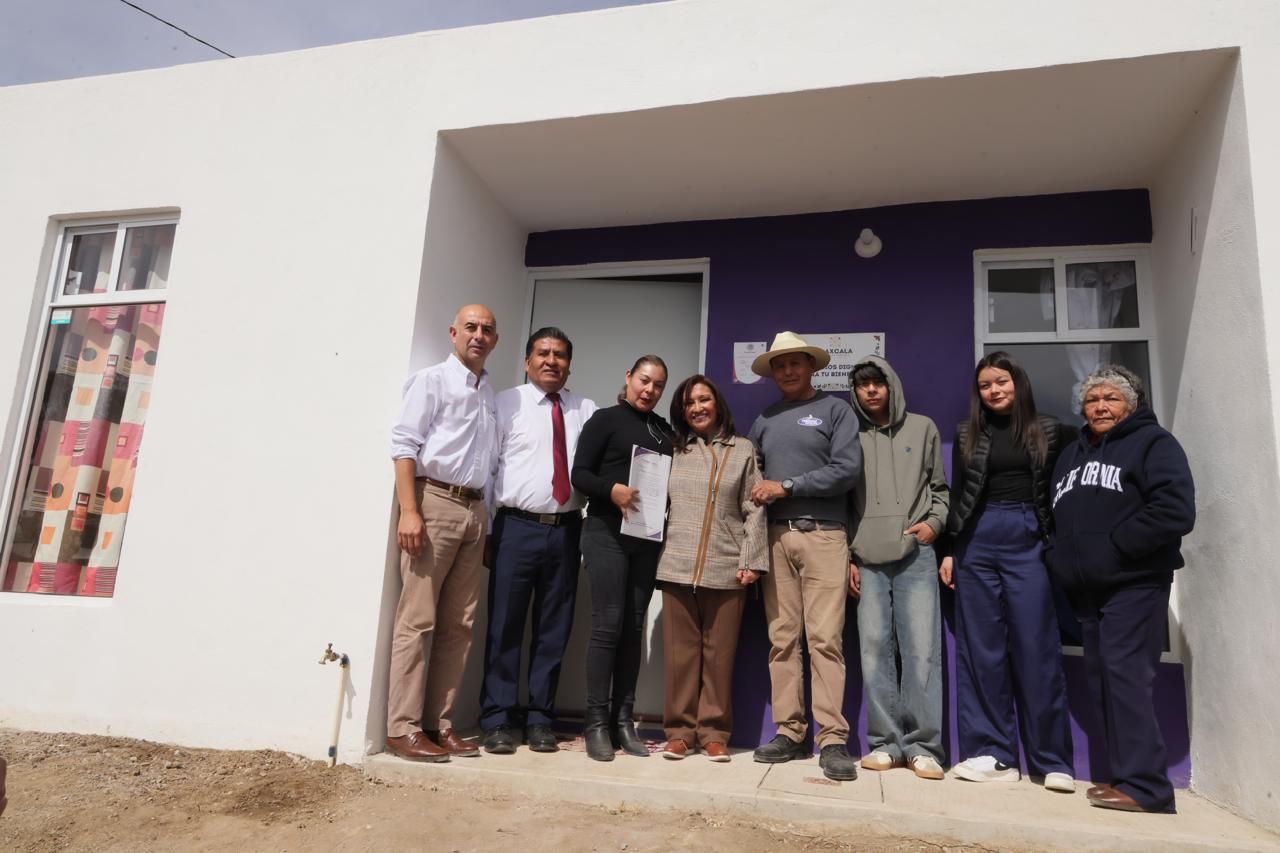 •Al encabezar la entrega de apoyos del programa “Vivienda para tu Bienestar” en San Cosme Xaloztoc, la gobernadora destacó que el bienestar comienza en los hogares