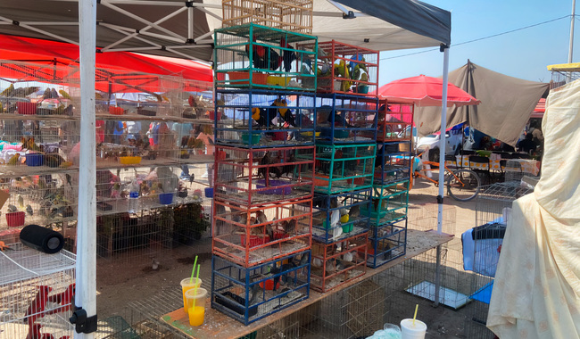 Profepa asegura más de cien aves silvestres en operativo contra el tráfico ilegal, en tianguis de Morelos