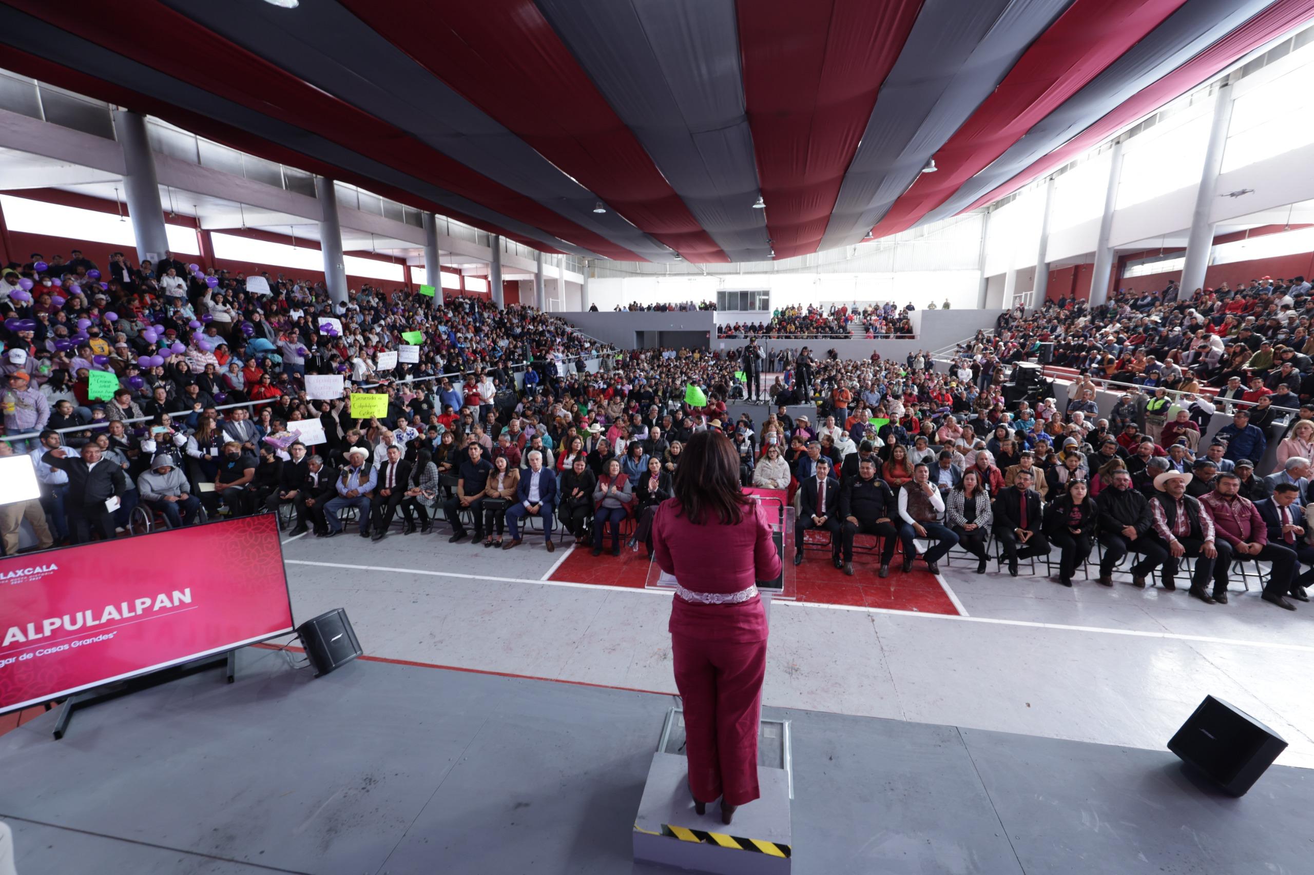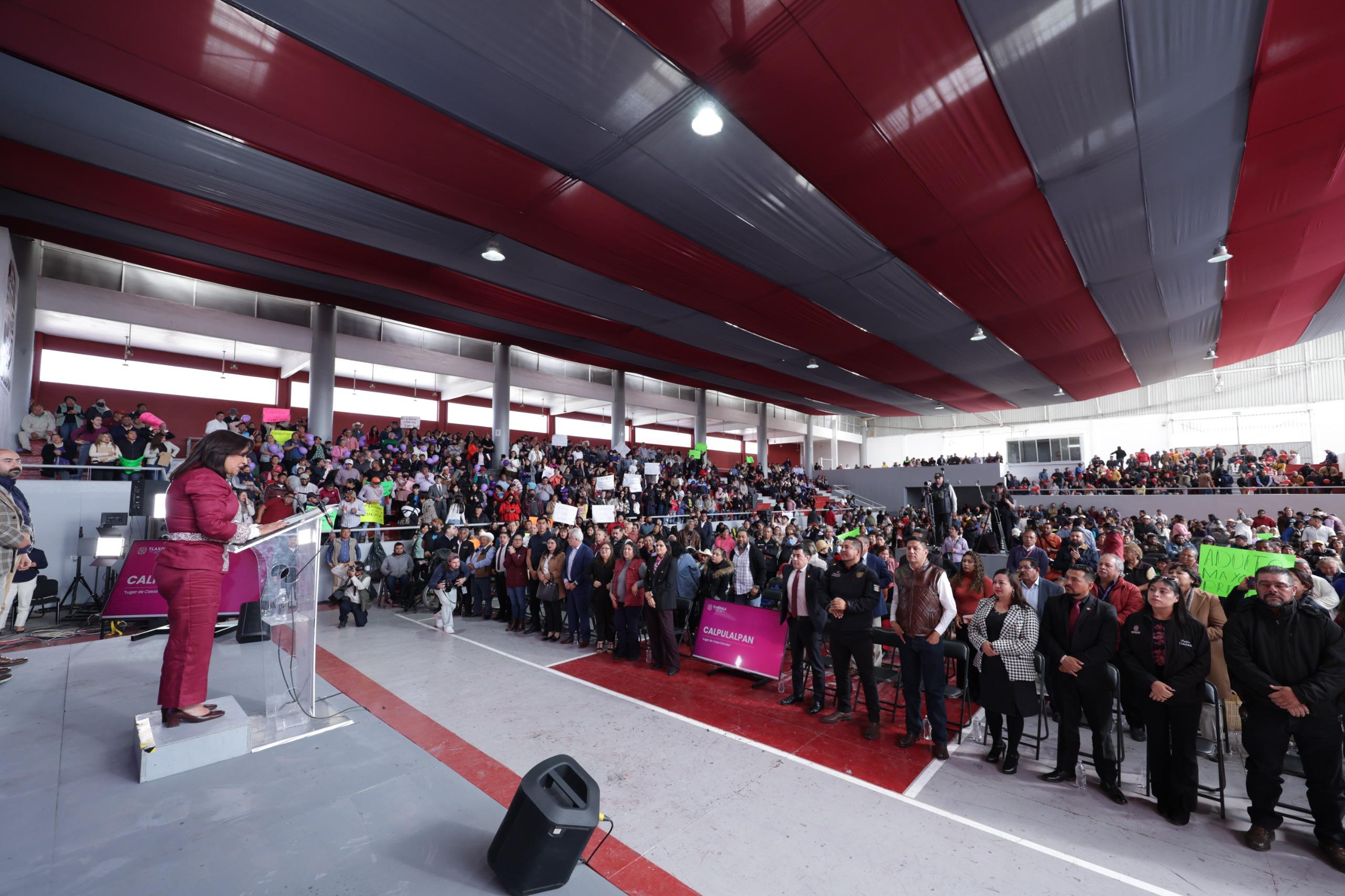 • En Calpulalpan, la gobernadora Lorena Cuéllar encabezó este ejercicio de rendición de cuentas en el que reafirmó que gobernar con cercanía, honestidad y resultados es la base de la transformación del estado