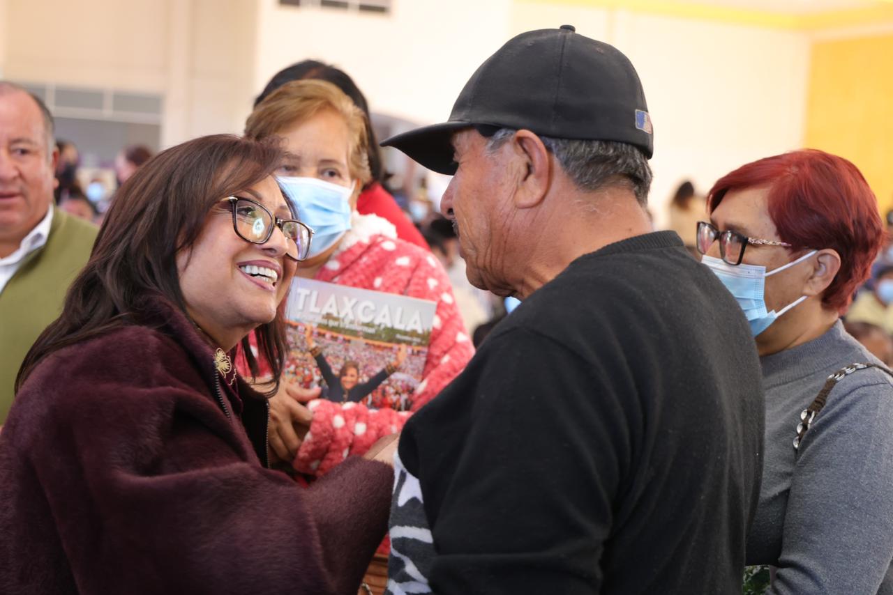 La gobernadora Lorena Cuéllar Cisneros afirmó que la transformación de Tlaxcala no se detiene y que, en cuatro años de su administración, se han invertido 472 millones de pesos en obras y acciones que mejoran la calidad de vida de los habitantes de los municipios de la región centro-oriente del estado, durante la Jornada “Cumpliendo al Pueblo”, realizada en Cuaxomulco.
