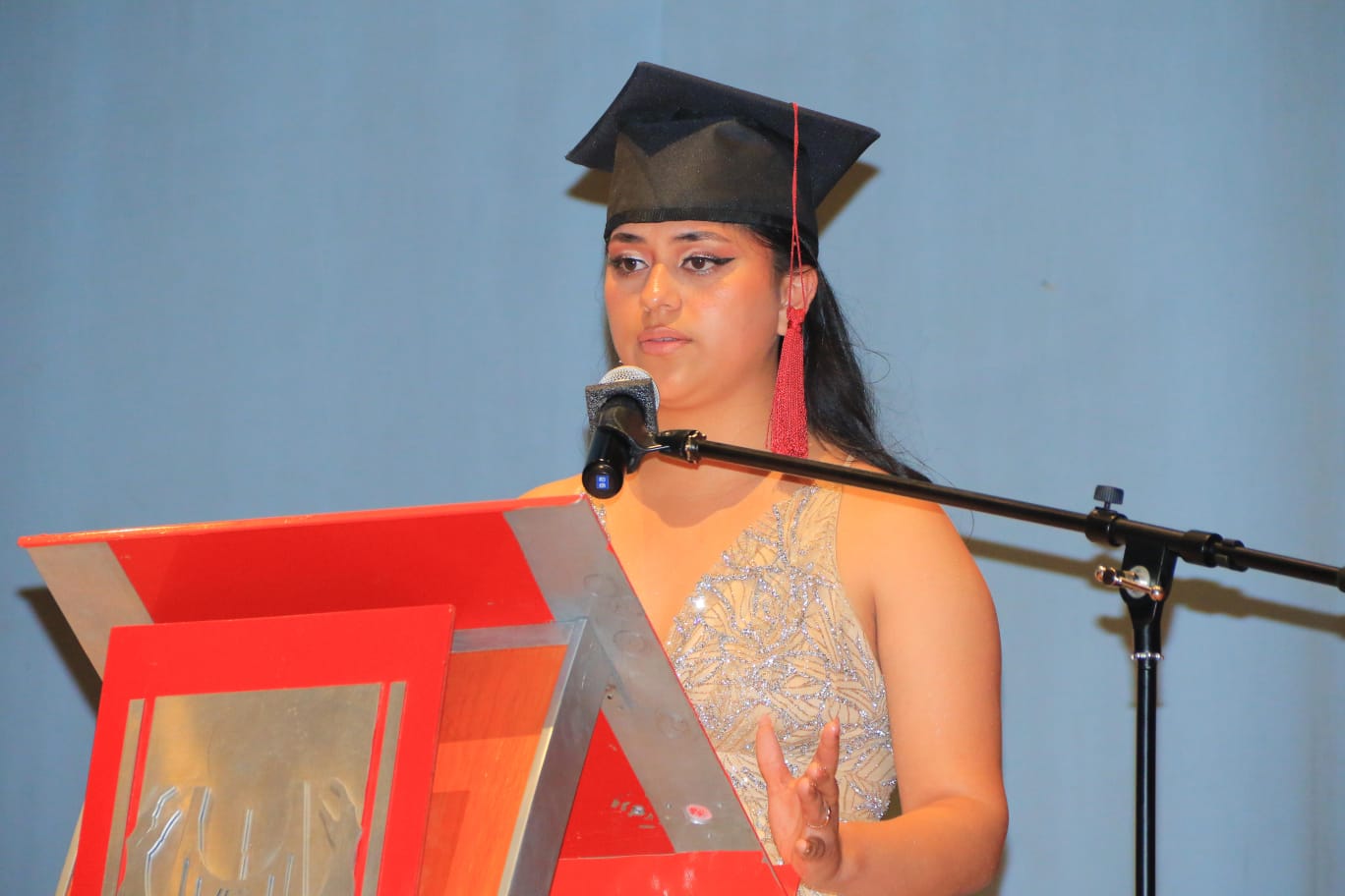 Previo a la entrega de constancias de conclusión de la Licenciatura, en representación de sus compañeros de la generación 2021-2025, Karol Ávila agradeció a la Universidad y a la comunidad docente por darles la oportunidad de ser parte de los profesionales que buscan un cambio en la sociedad y de continuar buscando la mejora continua sin perder la esencia de cada uno.