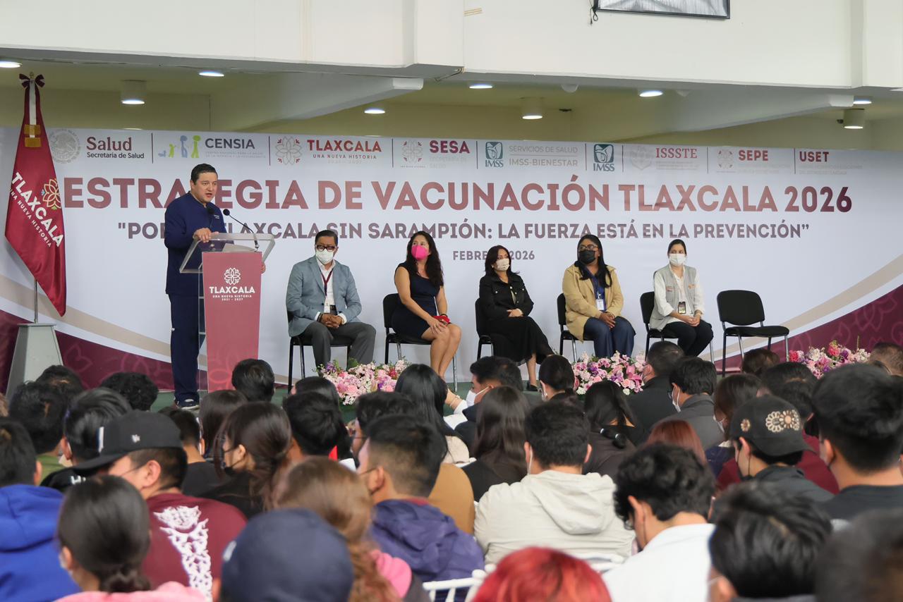 Con el objetivo de reforzar la salud pública y prevenir casos de sarampión en la entidad, la gobernadora Lorena Cuéllar Cisneros puso en marcha la estrategia de vacunación 2026 denominada “Por un Tlaxcala sin sarampión: la fuerza está en la prevención”, que contempla brigadas en universidades públicas y privadas para aplicar biológicos de manera gratuita a la población estudiantil.