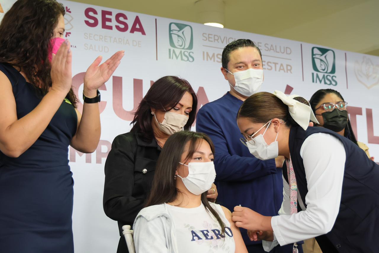 • La gobernadora Lorena Cuéllar Cisneros encabezó el inicio de la jornada en el Instituto Tecnológico de Apizaco, donde se aplicarán vacunas a estudiantes y docentes