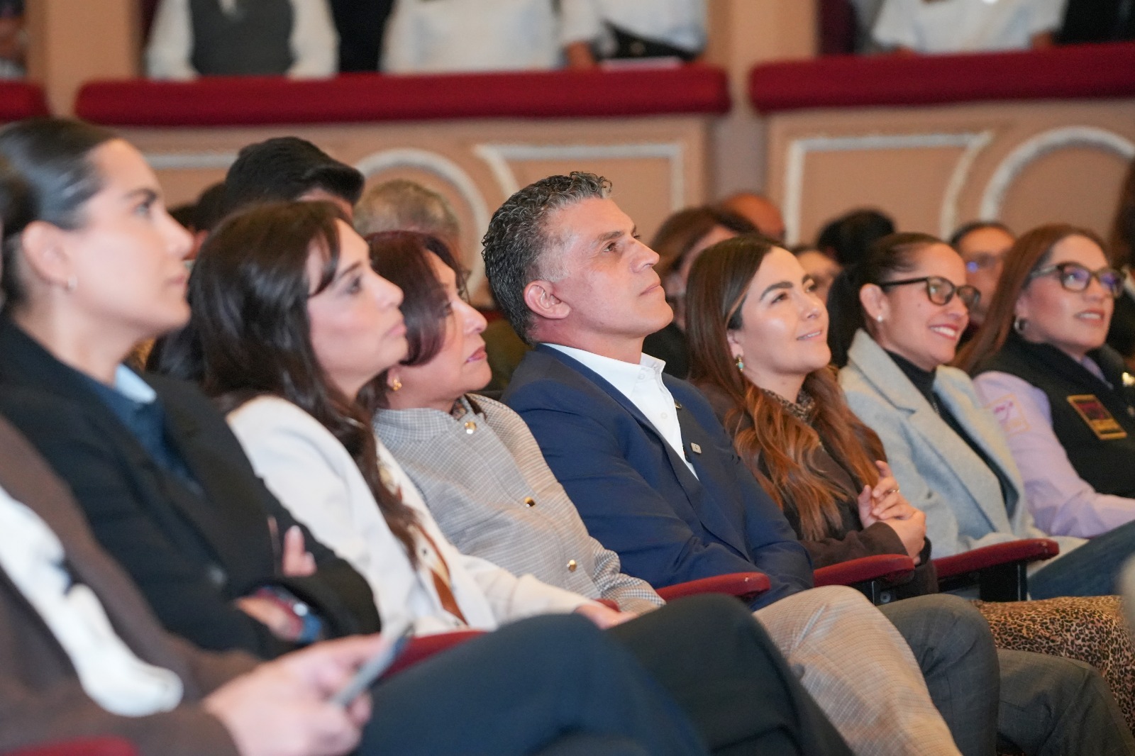 En el Teatro Xicohténcatl, el alcalde reconoció a la ponente por su labor en favor de mujeres que hoy cuentan con mayor protección legal, más visibilidad y más herramientas para defender su dignidad y sus derechos, gracias a la Ley Olimpia.