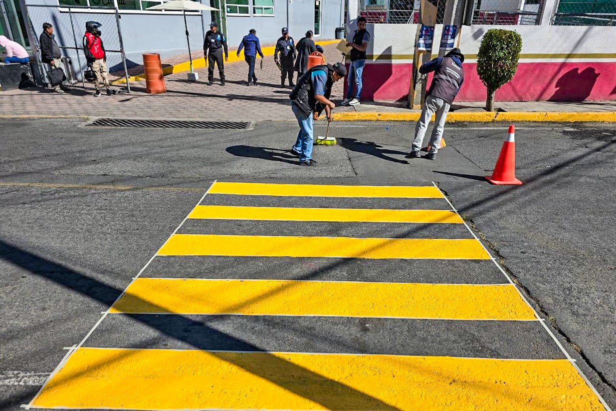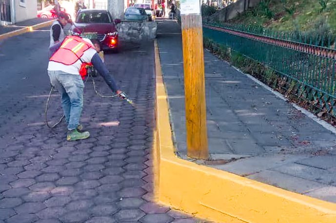 Como parte de estos trabajos se da continuidad a las labores de pinta de señalética en la avenida Gasoducto, avenida Galeana y en el primer cuadro de la comunidad, con lo que se mejora la movilidad y se refuerza la seguridad vial.