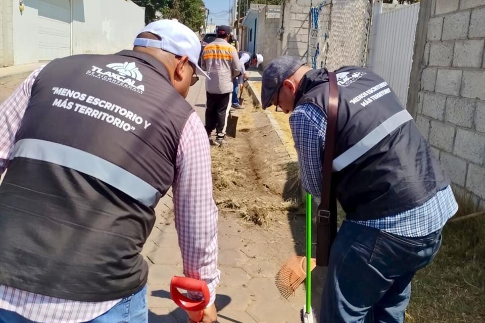 El presidente municipal de Tlaxcala, Alfonso Sánchez García, puso en marcha este sábado la Macrofaena de “Más territorio y menos escritorio” en la comunidad de Acuitlapilco, donde a través de brigadas se avanza en el rescate de la ciudad.